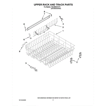 The Upper Dish Rack is an OEM replacement part for Whirlpool dishwashers. Located on the upper level inside the tub, it provides an area for washing smaller dishes, utensils, and glasses.