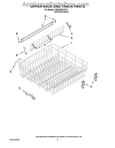 The Upper Dishrack Rail is an OEM replacement part for Whirlpool dishwashers. It guides upper racks in and out for easy access to dishes.