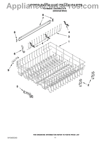 The Upper Dishrack Rail is an OEM replacement part for Whirlpool dishwashers. It guides upper racks in and out for easy access to dishes.
