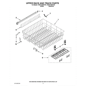 Parts for Whirlpool 7WDT770PAYM1: 09 - Upper Rack And Track Parts