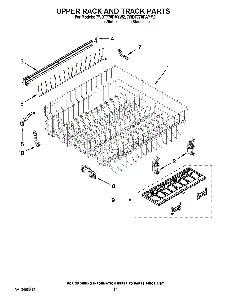 Parts for Whirlpool 7WDT770PAYM2: 09 - Upper Rack And Track Parts