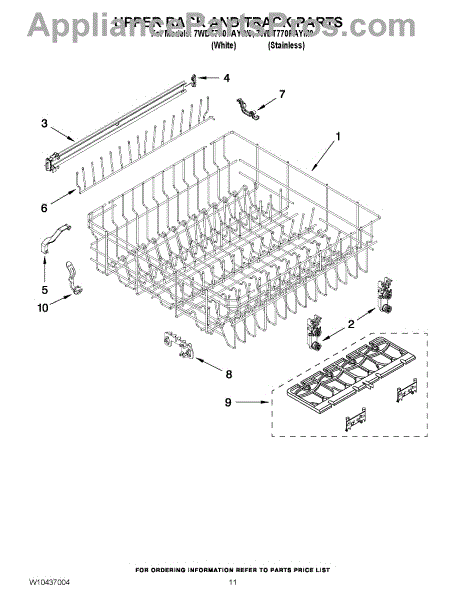 Parts for Whirlpool 7WDT770PAYW0: 09 - Upper Rack And Track Parts