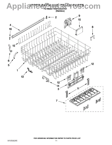 Parts for Whirlpool 7WDT950SAYM1: 09 - Upper Rack And Track Parts