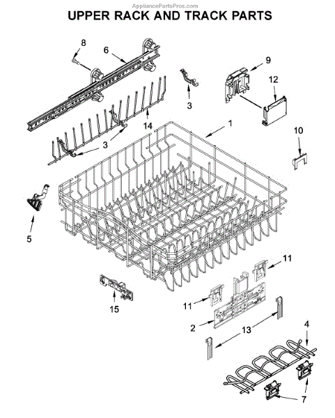 This upper rack assembly restores the top loading area of your dishwasher and provides stable, organized support for glasses, cups and small dishes in an onyx black finish. Replaces a cracked, bent or missing upper rack. What it does