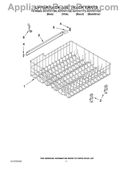 Parts for Whirlpool DU1010XTXB2: 09 - Upper Rack And Track Parts