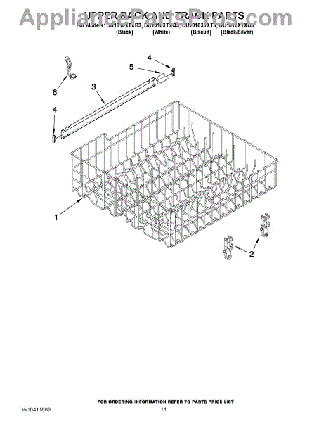 Parts for Whirlpool DU1010XTXQ3: 09 - Upper Rack And Track Parts