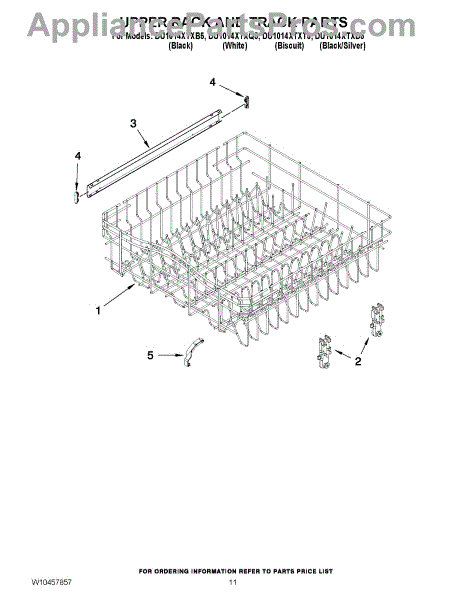 Parts for Whirlpool DU1014XTXB5: 09 - Upper Rack And Track Parts