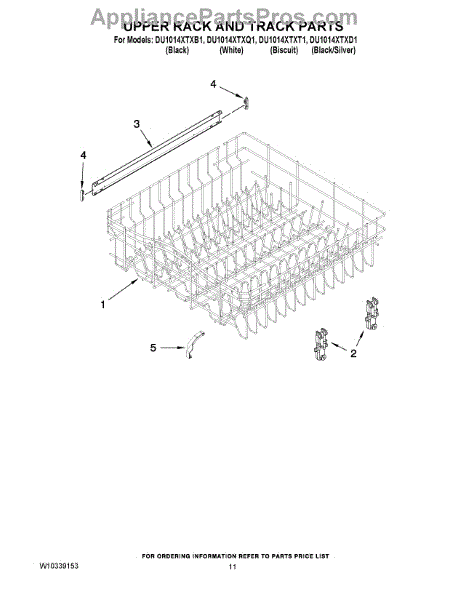 Guides the upper rack smoothly in and out of your dishwasher. Replace if cracked, broken, or wheels no longer roll properly along the track.