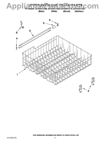 The Upper Dishrack Rail is an OEM replacement part for Whirlpool dishwashers. It guides upper racks in and out for easy access to dishes.