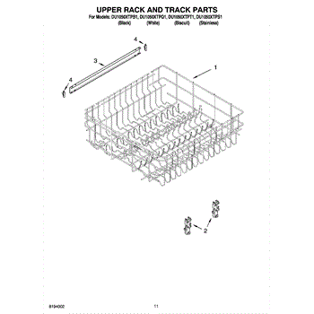 Parts for Whirlpool DU1050XTPT1: 09 - Upper Rack And Track Parts