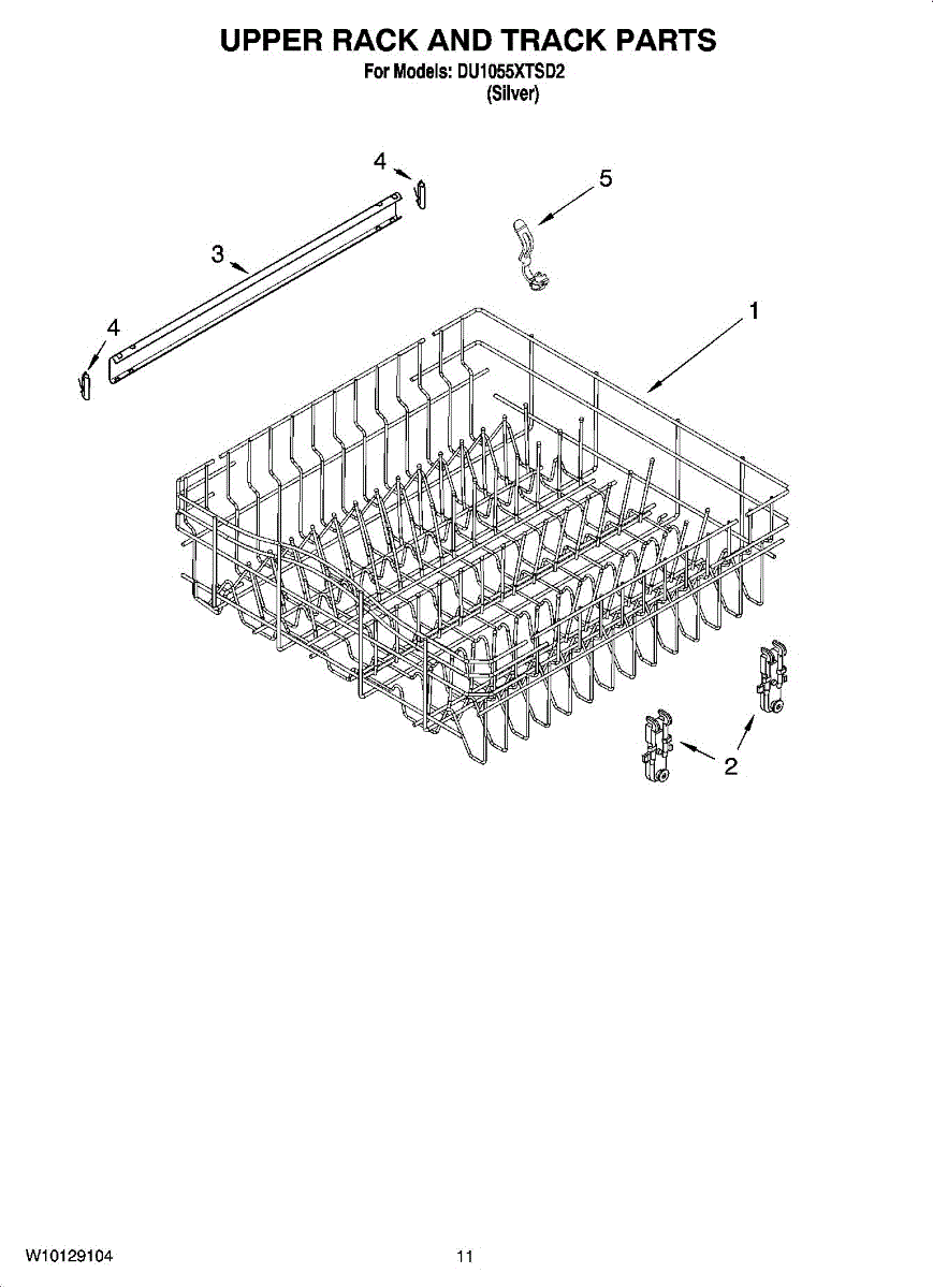 Replacement upper dishrack for dishwashers. Holds dishes, glasses, and utensils during wash cycles. Replace if rusted, cracked, or broken tines damage items.