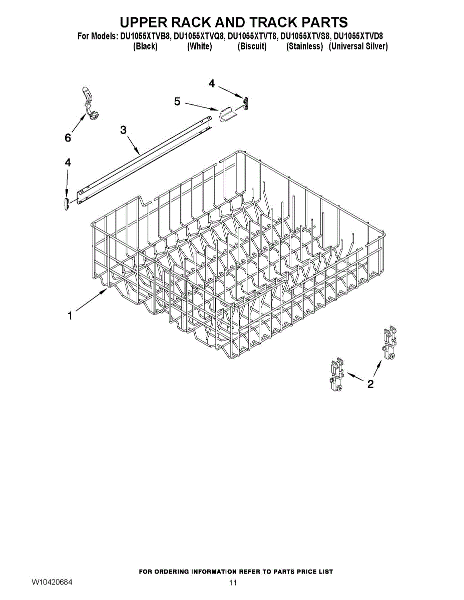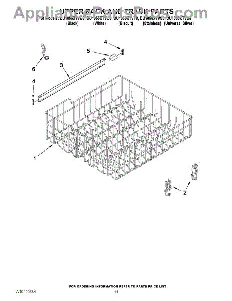 Parts for Whirlpool DU1055XTVD8: 09 - Upper Rack And Track Parts