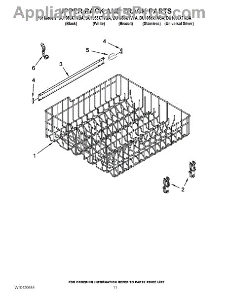 Parts for Whirlpool DU1055XTVSA: 09 - Upper Rack And Track Parts