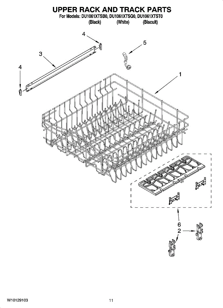 Replacement upper dishrack for dishwashers. Holds dishes, glasses, and utensils during wash cycles. Replace if rusted, cracked, or broken tines damage items.