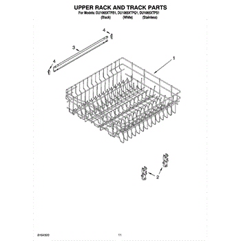 Parts for Whirlpool DU1065XTPS1: 09 - Upper Rack And Track Parts