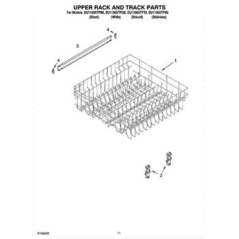 Parts for Whirlpool DU1100XTPB6: 09 - Upper Rack And Track Parts