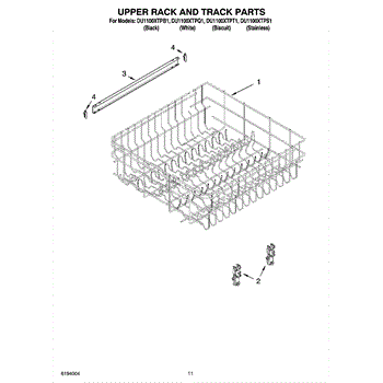 Parts for Whirlpool DU1100XTPQ1: 09 - Upper Rack And Track Parts