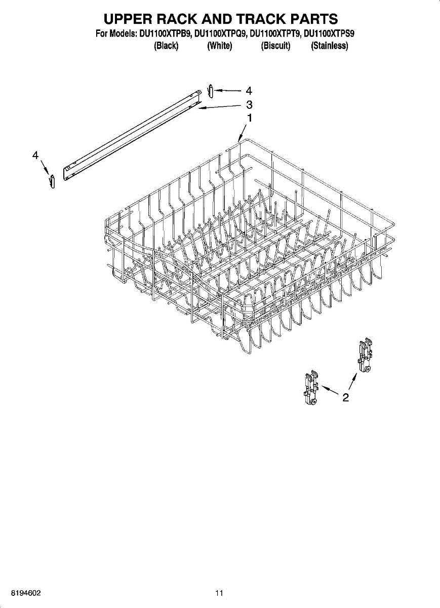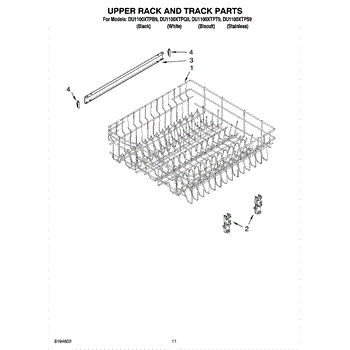 Parts for Whirlpool DU1100XTPQ9: 09 - Upper Rack And Track Parts