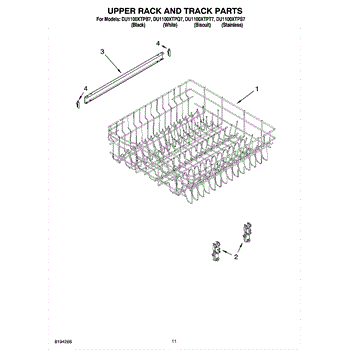 Parts for Whirlpool DU1100XTPT7: 09 - Upper Rack And Track Parts