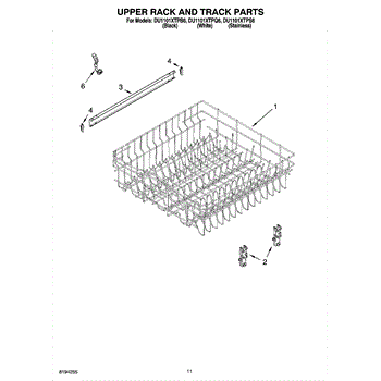 Parts for Whirlpool DU1101XTPQ6: 09 - Upper Rack And Track Parts