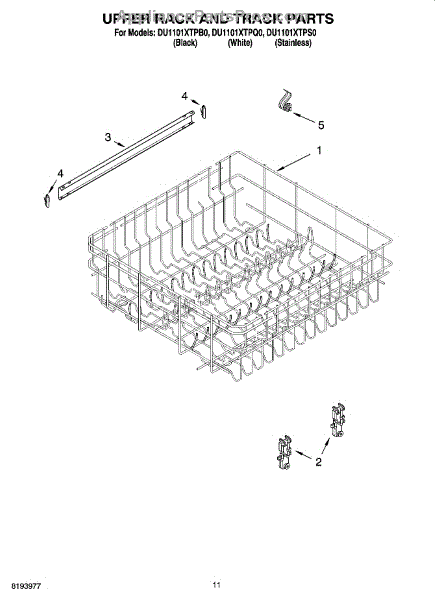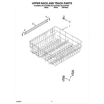 Parts for Whirlpool DU1101XTPS0: 09 - Upper Rack And Track Parts