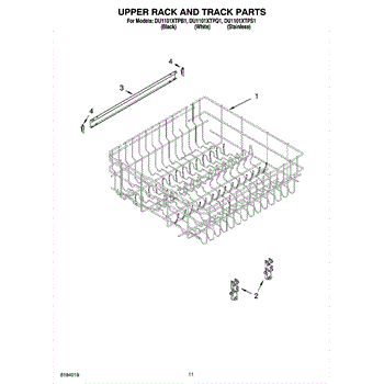 Parts for Whirlpool DU1101XTPS1: 09 - Upper Rack And Track Parts