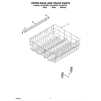 Parts for Whirlpool DU1145XTPB1: 09 - Upper Rack And Track Parts