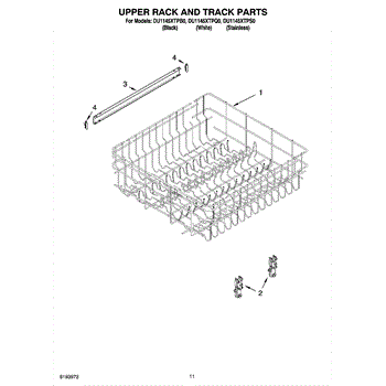 Parts for Whirlpool DU1145XTPQ0: 09 - Upper Rack And Track Parts
