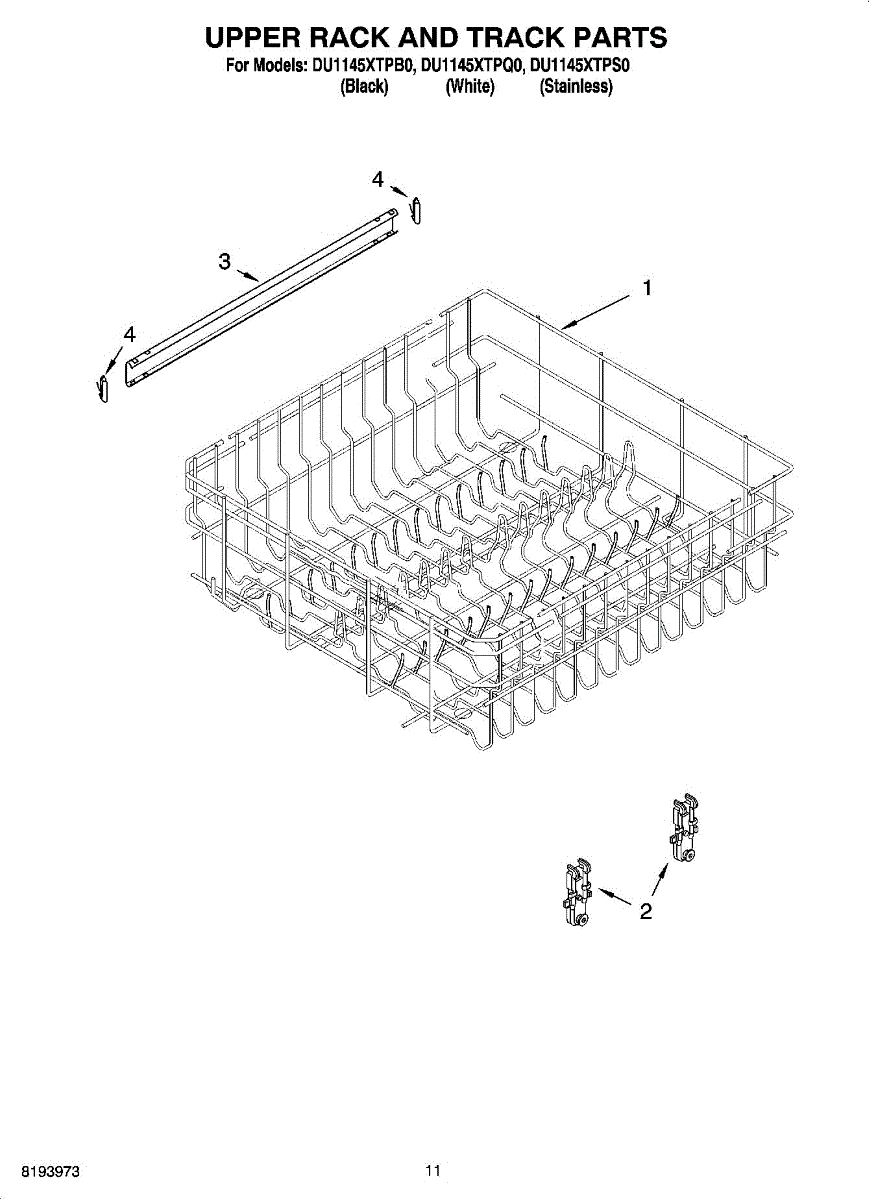 Replacement upper dishrack for dishwashers. Holds dishes, glasses, and utensils during wash cycles. Replace if rusted, cracked, or broken tines damage items.