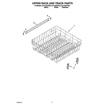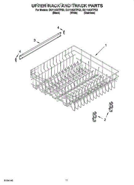 Parts for Whirlpool DU1145XTPS3: 09 - Upper Rack And Track Parts