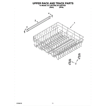 Parts for Whirlpool DU1148XTPB8: 09 - Upper Rack And Track Parts