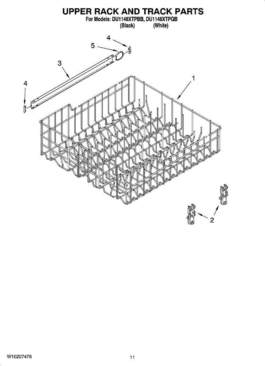 Parts for Whirlpool DU1148XTPBB: 09 - Upper Rack And Track Parts