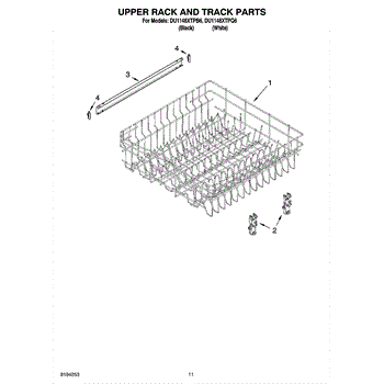Parts for Whirlpool DU1148XTPQ6: 09 - Upper Rack And Track Parts