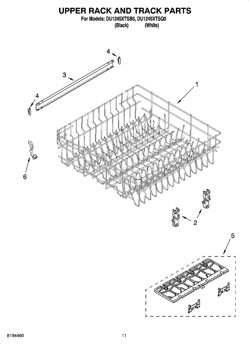 Replacement upper dishrack for dishwashers. Holds dishes, glasses, and utensils during wash cycles. Replace if rusted, cracked, or broken tines damage items.
