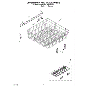 Parts for Whirlpool DU1248XTSS1: 09 - Upper Rack And Track Parts
