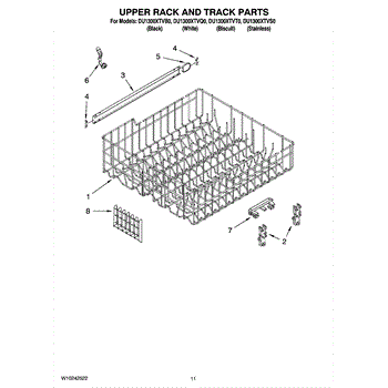Parts for Whirlpool DU1300XTVB0: 09 - Upper Rack And Track Parts
