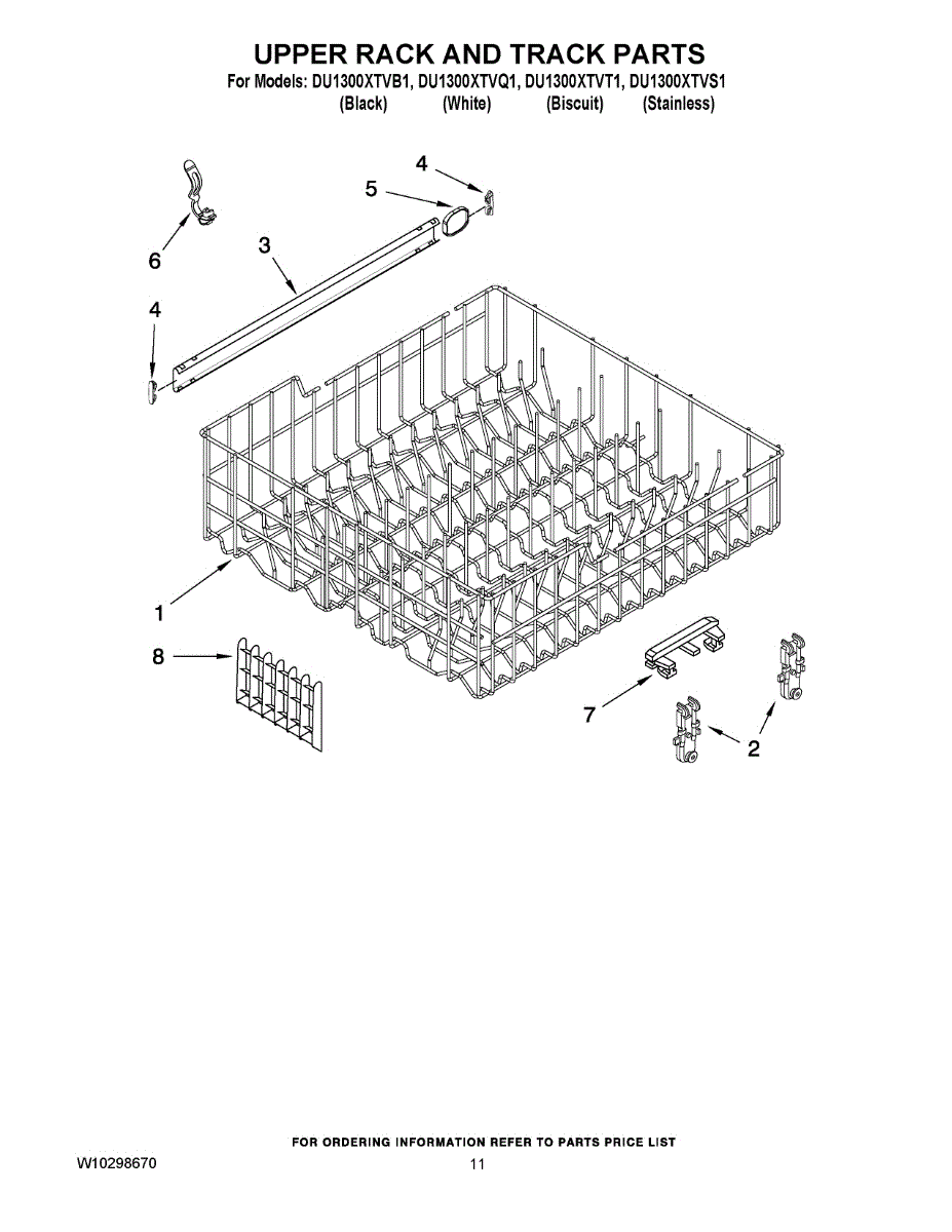 Replace your damaged dishwasher upper dishrack. Installs in the top position to hold dishes, glasses, and cups. Ideal when prongs are broken or worn.