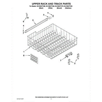 Parts for Whirlpool DU1300XTVQ6: 09 - Upper Rack And Track Parts