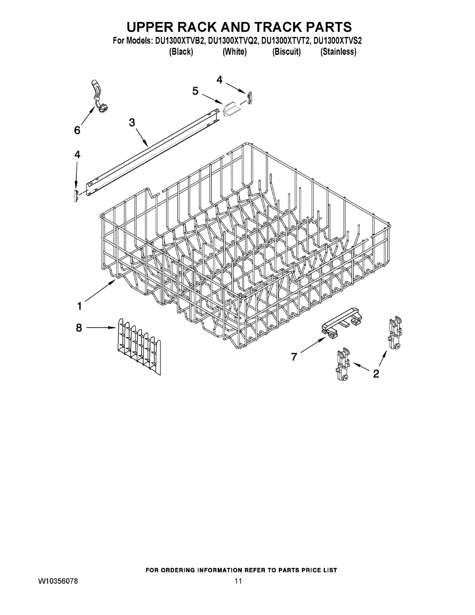 Parts for Whirlpool DU1300XTVS3: 09 - Upper Rack And Track Parts
