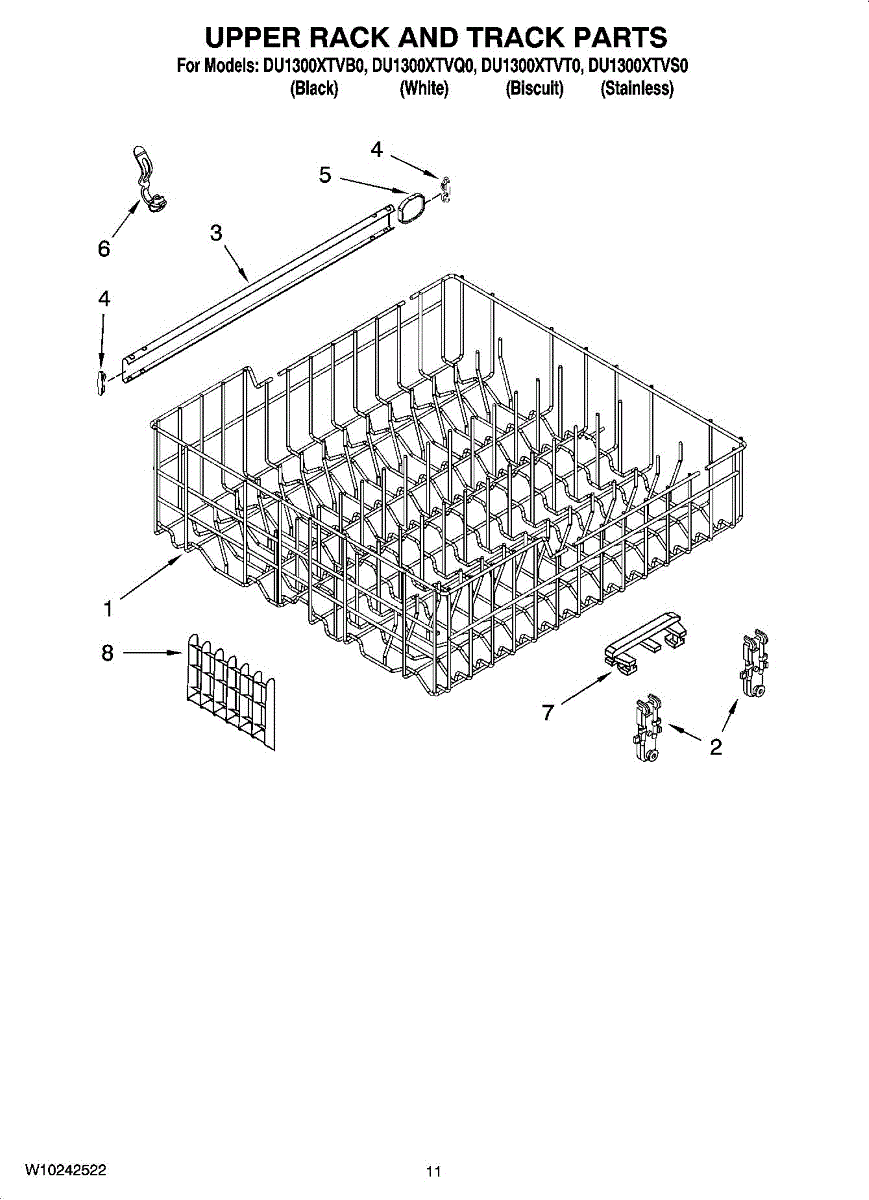 Replace your damaged dishwasher upper dishrack. Installs in the top position to hold dishes, glasses, and cups. Ideal when prongs are broken or worn.