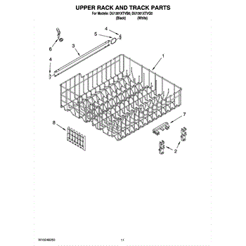 Parts for Whirlpool DU1301XTVB0: 09 - Upper Rack And Track Parts
