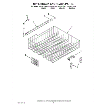Parts for Whirlpool DU1301XTVQ5: 09 - Upper Rack And Track Parts