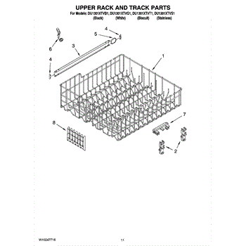Parts for Whirlpool DU1301XTVS1: 09 - Upper Rack And Track Parts