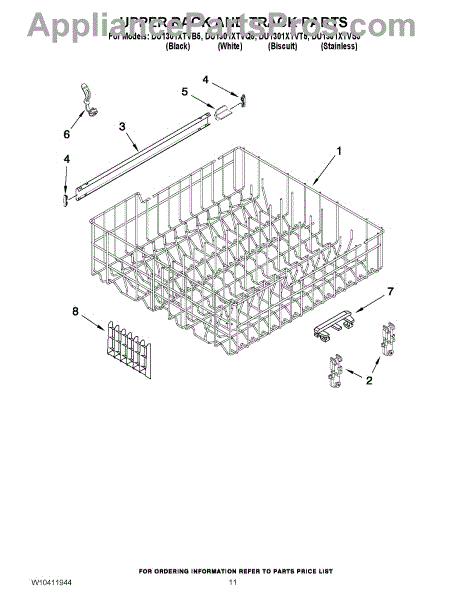 Parts for Whirlpool DU1301XTVS5: 09 - Upper Rack And Track Parts