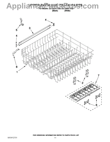 Parts for Whirlpool DU1345XTVQ5: 09 - Upper Rack And Track Parts