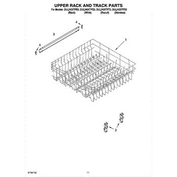 Parts for Whirlpool DUL240XTPB3: 09 - Upper Rack And Track Parts