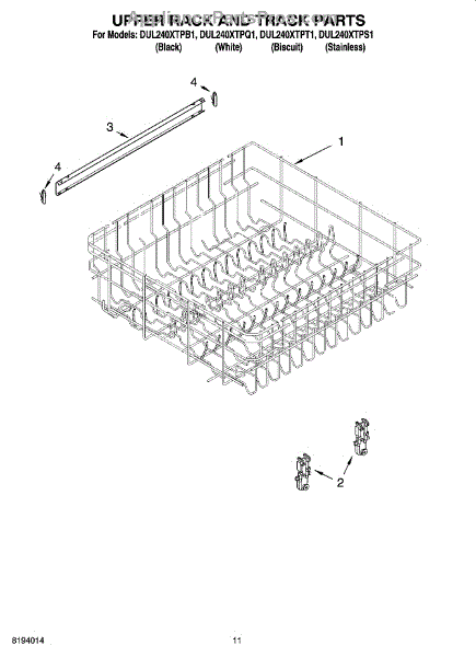 Parts for Whirlpool DUL240XTPQ1: 09 - Upper Rack And Track Parts