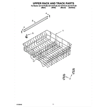 Parts for Whirlpool GU1101XTLT0: 09 - Upper Rack And Track Parts