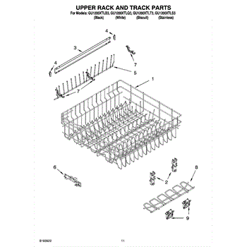 The Upper Dish Rack is an OEM replacement part for Whirlpool dishwashers. Located on the upper level inside the tub, it provides an area for washing smaller dishes, utensils, and glasses.