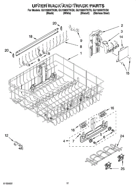 Adjuster kit for upper dishrack. Also order retainer part number WP3400918 as needed